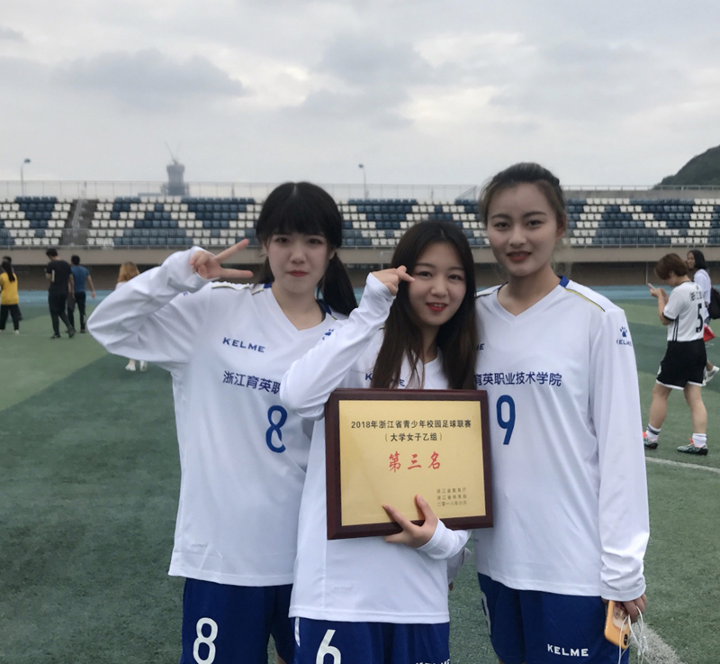 女足队员为:16国贸C班黄荧荧,16国贸C班吴盈莹,16跨境电商班周佳洁、严芳英,17国贸C班余倩茹,17国贸五年一贯A班周莹芝、孙金萍、贺璐璐,16应用日语汤嘉妮,17空乘B班陆灵飞,17空乘I班赵佩玲、廖小涵,17空乘H班骆冰,17计应D班周佳丽。