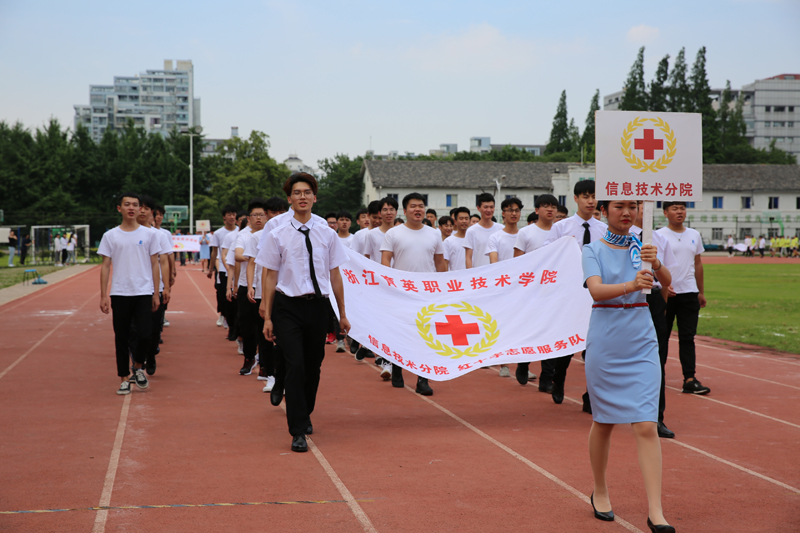 每年3-5月,都要对全院新生进行卫生健康救护知识教育,同时传授止血、包扎、固定、担架制作及搬运四项基本救护技能。为提高卫生健康教育的实效性,学院每年举行全院卫生健康救护技能大赛。从2005年至今,已经连续举办14届。该项活动深受广大师生欢迎,受到了省市红十字会的好评。《浙江日报》曾经图文报道我院红十字健康救护比赛活动。此次参赛的330名队员动作娴熟、准确到位、操作快速,一切紧张而有序。