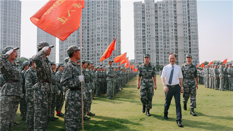 两周的训练,练就整齐的步伐,昂扬的斗志,阳光的脸庞。恰同学少年风华正茂! 党委副书记、副院长谢鑫作军训总结,希望在军训中增强的国防观念,激发的爱国热情和革命英雄主义精神,学习的基本的军事知识和技能,能一直伴随你们;希望军训中磨练的意志、培养的吃苦耐劳的精神,能一直伴随着你们;希望军训中增强的组织纪律观念,集体荣誉感能一直秉持下去;希望军训中严格遵守纪律、一切行动听指挥、整理内务一丝不苟,日常行为规范、文明,同学之间互学、互帮、互比、互助,能够一直发扬下去。