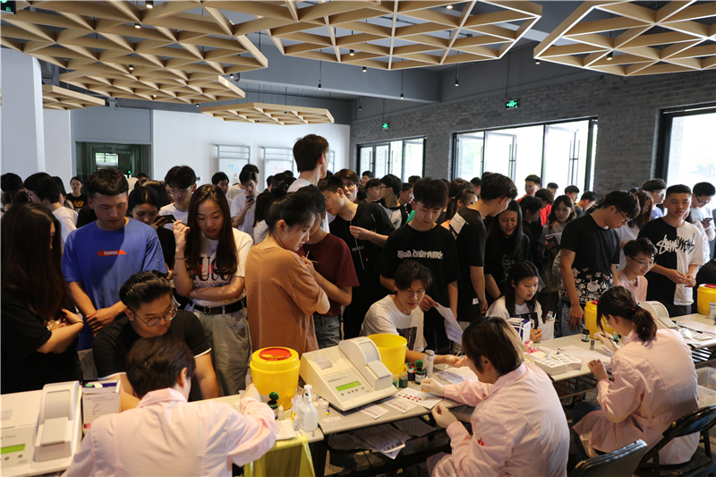 令人感动的不仅仅是那些等待献血的同学们的身影,还有身穿红马甲穿梭在现场的志愿者们。他们一早布置好现场,耐心地等待学生和指导他们填写信息登记表,一直关心着献血者的情况,为他们送上热水与饼干。