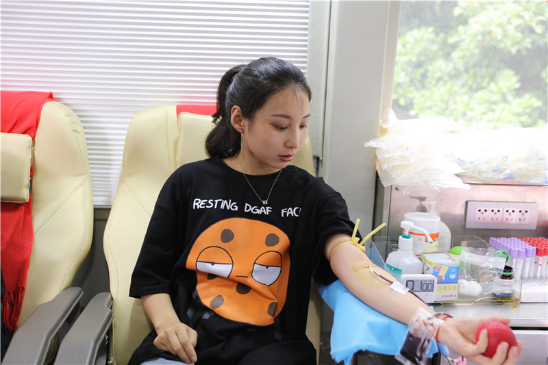 在医护人员和青年志愿者的协助下,一批又一批的同学们填表、化验、等候、抽血、休息,一切工作都有条不紊。献血车前也是各个时段都大排长龙,每个人基本上都要等待一个小时左右,可他们没有抱怨没有离开,为了自己心中的那一份善良,现场无偿献血人数统计表不断被刷新。