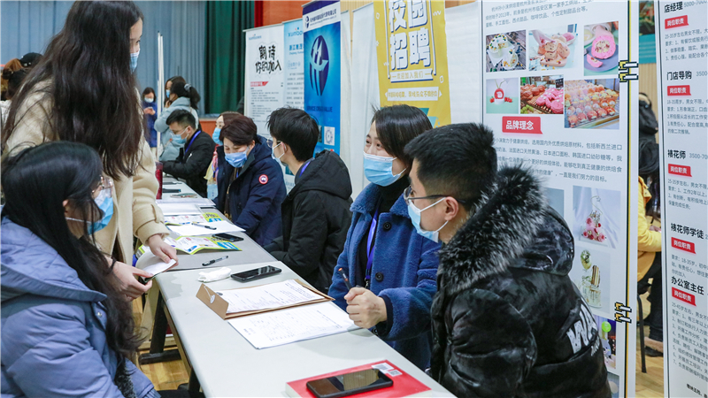 按照疫情防控要求,招聘会分批依次有序进场,防止聚集拥挤。
