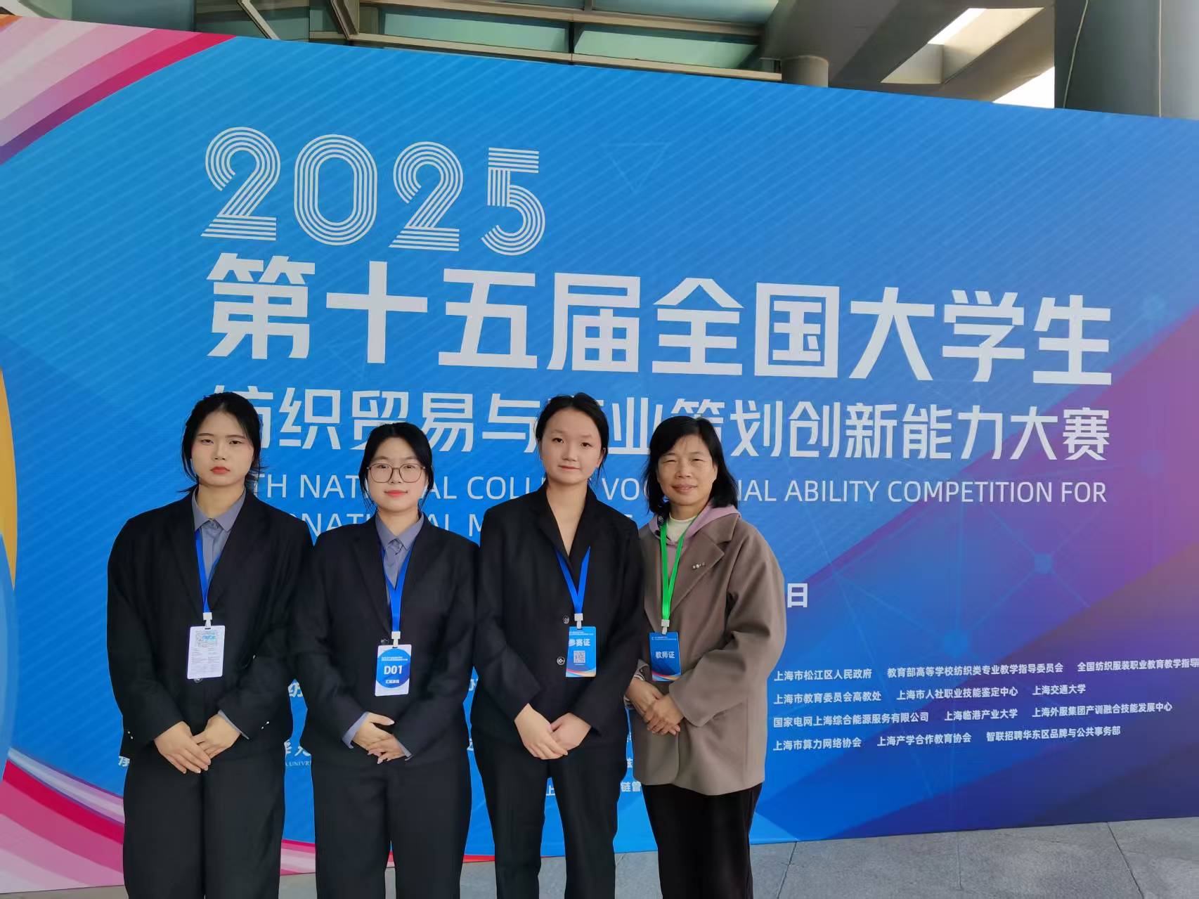 第15届全国大学生纺织贸易与商业策划创新能力大赛由教育部高等学校纺织类专业教学指导委员会和中国纺织服装教育学会联合主办,大赛主要包括外贸订单分析、样品跟单(样品制作、样品检验)、原辅料跟单、生产跟单(进度跟单、品质跟单)、包装跟单、运输跟单等外贸跟单操作技能,跨境电商运营等技能实战,然后进行方案汇报。全国各高等院校进入决赛共有本科19支队,高职20支队伍,我校跨境电商专业大二学生团队(24跨境电商B张淇淇,王睿妍、赵晋巧)经过激烈角逐,最终张淇淇同学荣获全国总决赛三等奖。