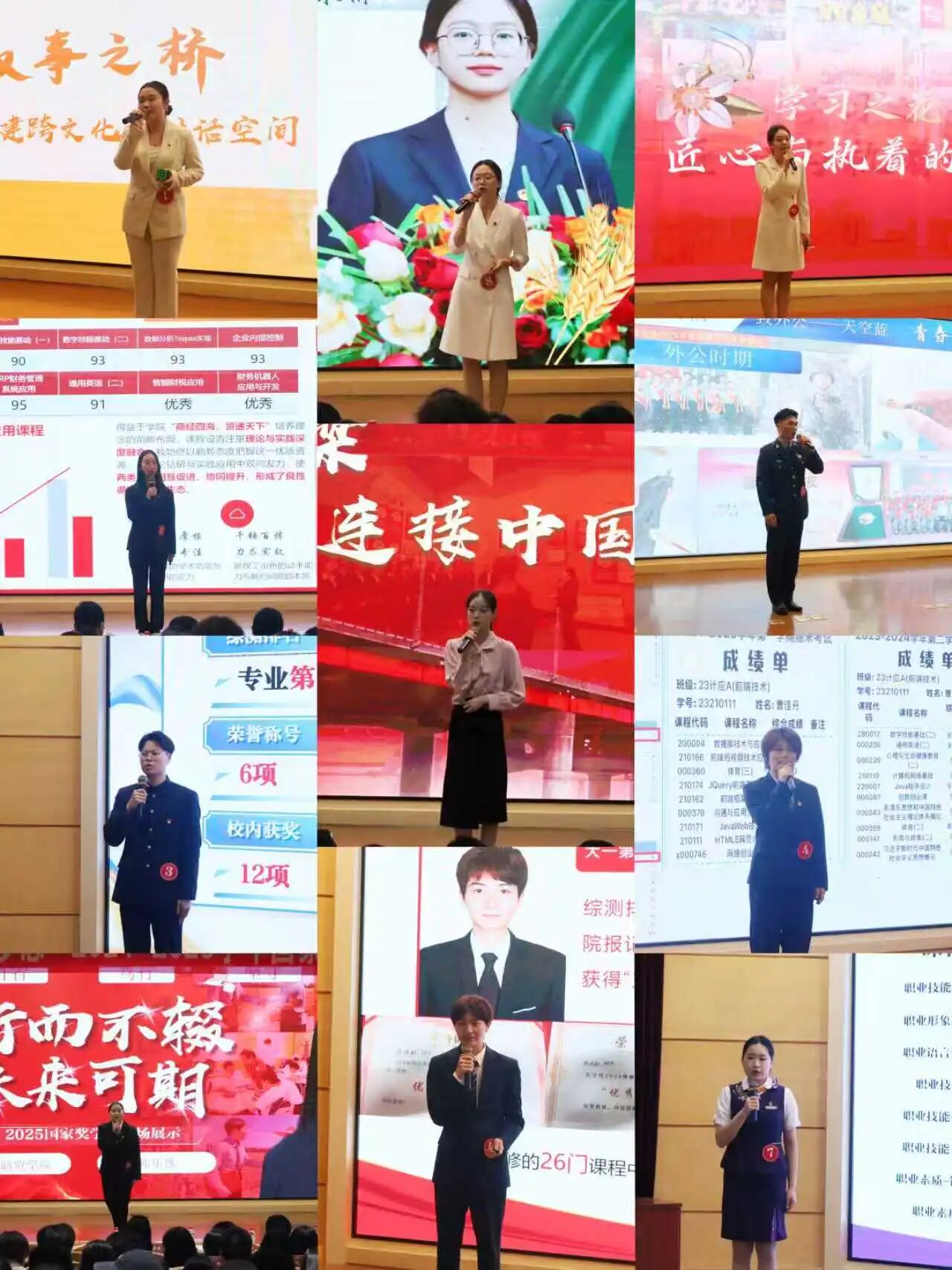 展示现场星光熠熠,精彩纷呈。22名同学按抽签顺序依次登台,以饱满的热情和激情的演绎,从思想道德、学习成绩、专业竞赛、特长技能、社会实践、榜样示范等综合素养方面进行全面展示:有的同学凭借专业第一的优异成绩夯实基础,并积极参与各类专业比赛;有的同学深耕志愿服务,累计服务时长超过1500小时,以实际行动诠释青年担当;有的同学在学科竞赛中不断突破自我,斩获各类奖项;还有的同学退伍不褪色,即便脱下军装,仍坚守“为人民服务”的初心,成为大家眼中“看得见、学得到”的榜样,赢得了全场的热烈掌声。
