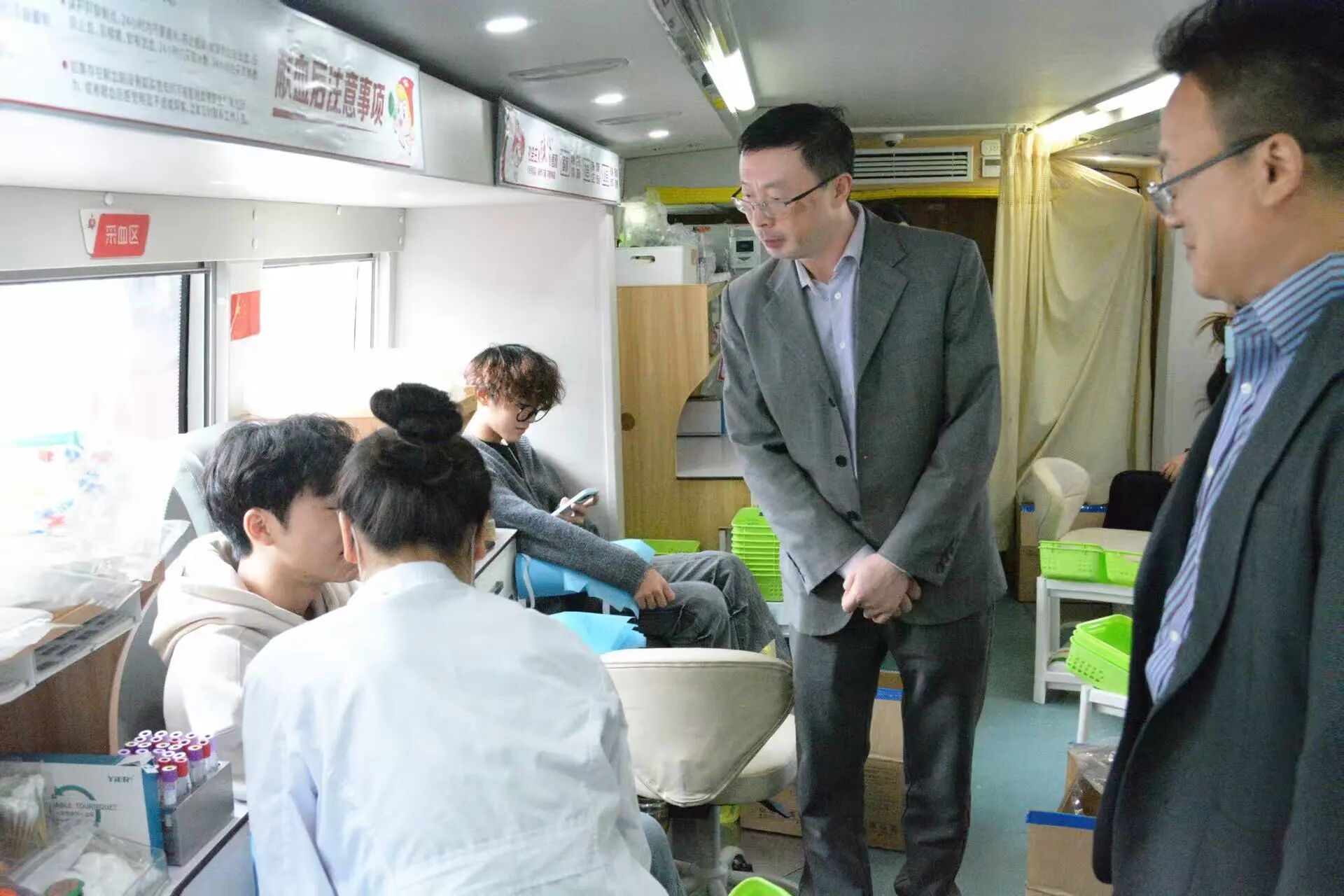 浙江省血液中心党委委员、副主任刘晋辉,学校党委副书记、副校长王敏来到现场,在献血点驻足交流,向正在参加无偿献血的师生表示亲切慰问,对师生积极参与无偿献血的爱心善举给予高度赞扬,为大家的无私奉献精神点赞。