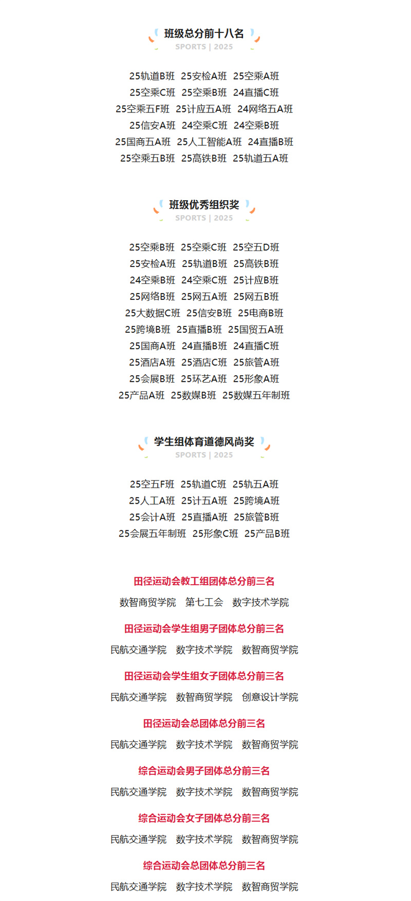 邬佳宣布体育道德风尚奖名单,王贤军宣布班级优秀组织奖名单,总裁判长谢剑峰宣布团体总分及班级总分名次。