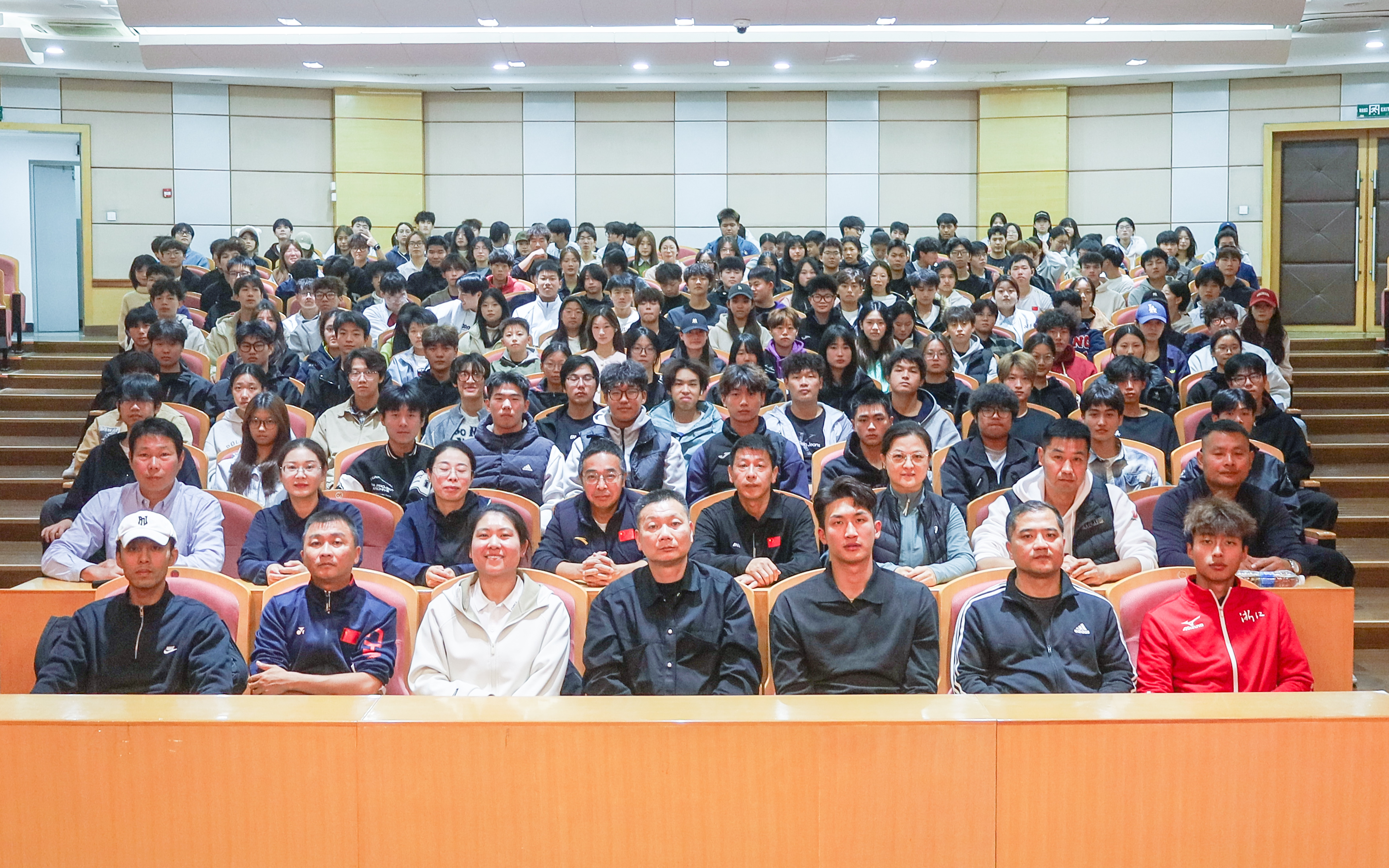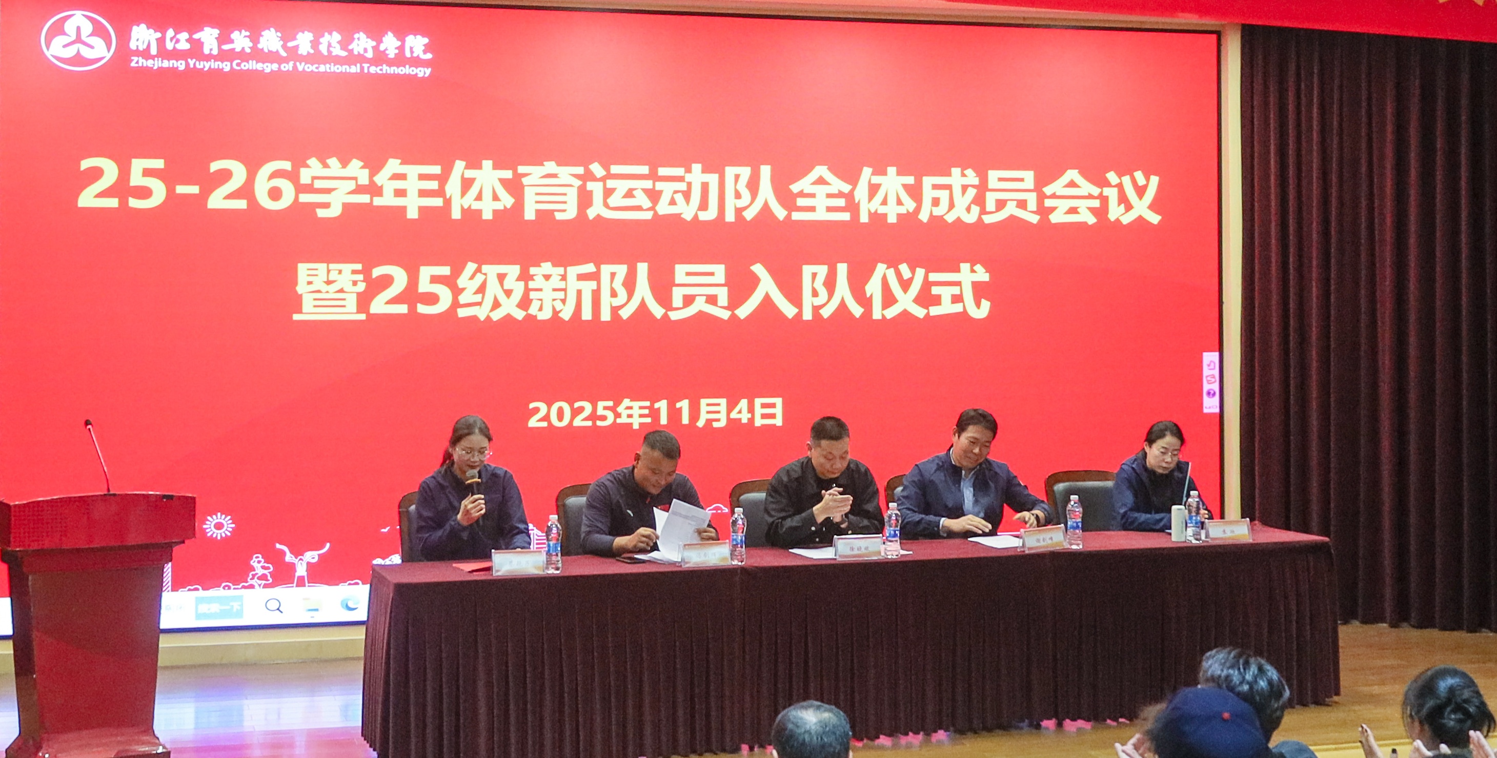 徐晓斌讲话。他指出,育英精神的内核是“大爱奉献、责任担当、顽强拼搏”,这与体育精神高度契合。他强调,体育精神不应局限于赛场,更要融入学习与生活。他寄语全体队员,要以顽强拼搏攻克学业难题,用团队协作处理生活事务,让体育精神成为成长路上的“加速器”,在学业提升和生活历练中交出优异答卷。同时勉励大家,新赛季新挑战孕育着新机遇,要以本次入队为新起点,将育英精神和体育精神熔铸为奋进动力。在训练中精益求精,在比赛中敢打敢拼,力争在新赛季再创佳绩,为校争光,让育英旗帜在更多赛场高高飘扬。