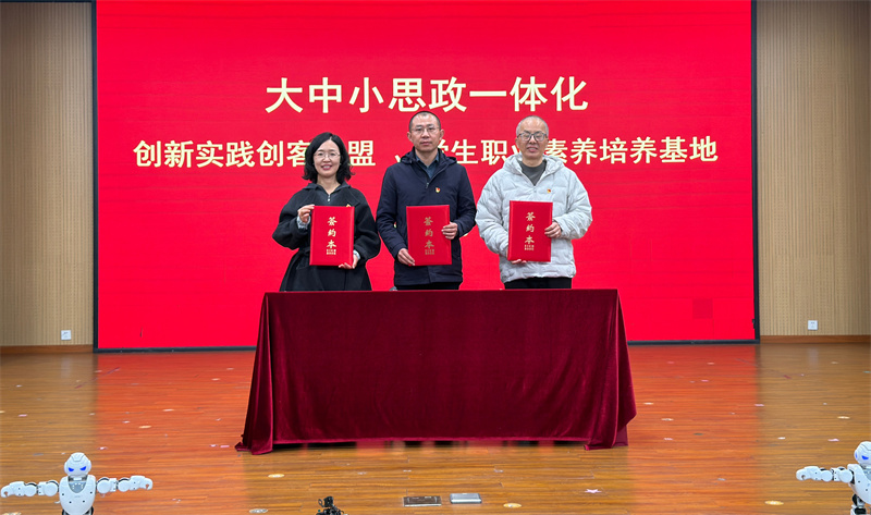 谢鑫指出,高职院校携手中小学共建“大中小学育人共同体”和“创新实践创客联盟”,是落实立德树人根本任务的一项具有深远意义的育人实践,是打破学段壁垒,推动区域教育资源的深度融合与共享的有益尝试。职业教育与基础教育联动,让中小学生在成长关键期更早接触职业启蒙教育、激发创新意识,将技术技能、工匠精神、劳动教育等优质教育资源注入中小学课堂。聚焦“高职引领•资源下沉”,三方携手推进“课程共建、师资共享、成果共融”,特别是以创客实践为载体,打通大中小学思政教育的衔接通道,推动思想政治教育贯穿育人全过程,实现循序渐进、螺旋上升的育人成效。