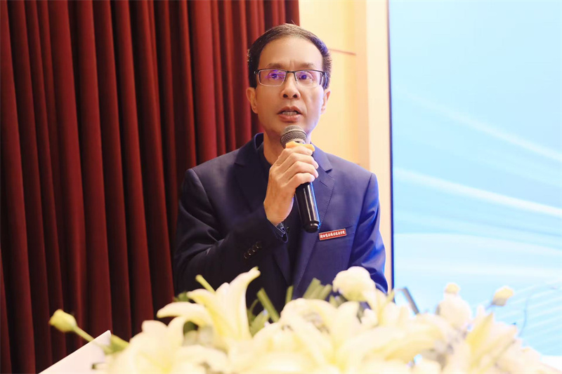 丁金昌致辞。他说,直播电商产业学院成立和杭州市直播电商人才培育基地揭牌,是学校深化产教融合、服务杭州数字经济发展的里程碑。产业学院是集多元功能于一体的开放式平台,将打造沉浸式教学环境,培养能引领行业发展的“懂技术、精运营、善策划、能管理”的高素质复合型人才。人才培育基地将充分发挥平台聚合效应,不仅服务在校学生,还将面向社会开展职业技能培训和认证,为行业从业人员提供持续进修的机会,力争成为杭州直播电商领域人才输送的“主阵地”和技术技能积累的“创新站”。同时,他提到“中高企”一体化人才共育联盟能构建中高职顺畅培养通道,为人才培养提供优质生源与系统化路径。通过联盟机制,共同设计衔接课程,共享实训资源,确保人才培养的连贯性与高质量。学校将聚焦深化“双融合”,建强“双师型”队伍,落实“立德树人”根本任务。他寄语师生积极参与,期望与各方携手将产业学院和基地建成全国直播电商人才培养的示范标杆。