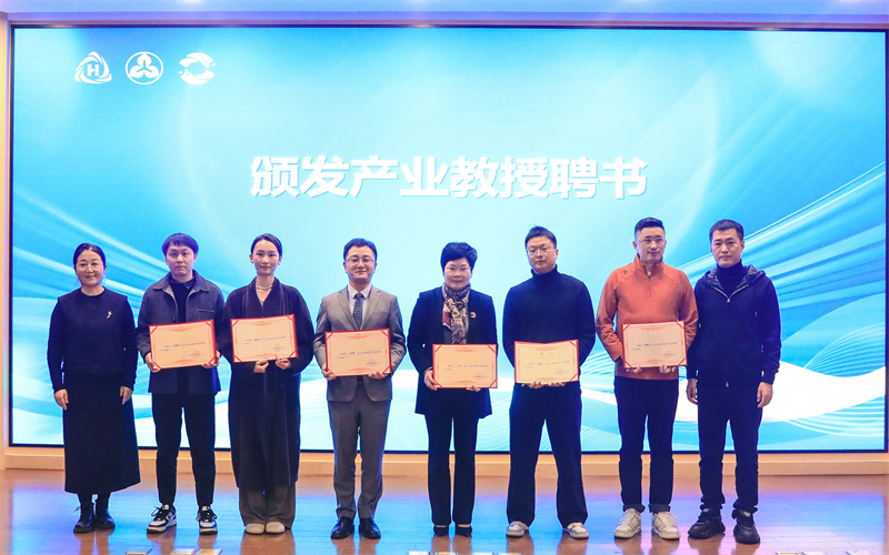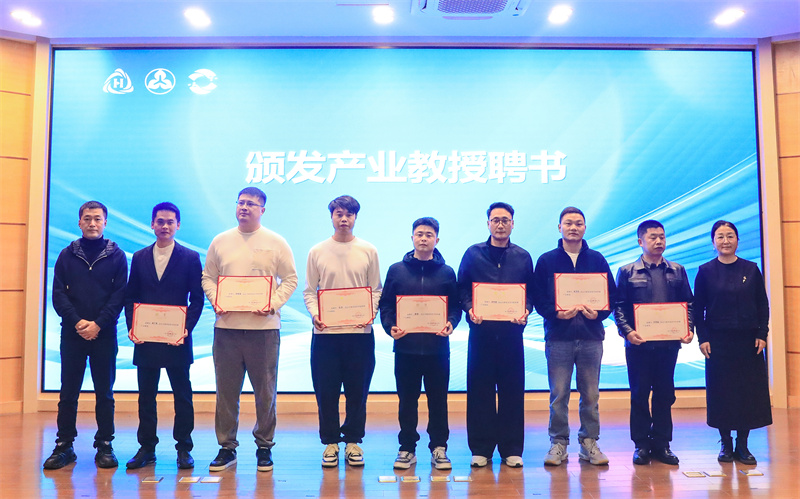 谢鑫与方剑共同为合作协会、企业高管颁发“产业教授”聘书。