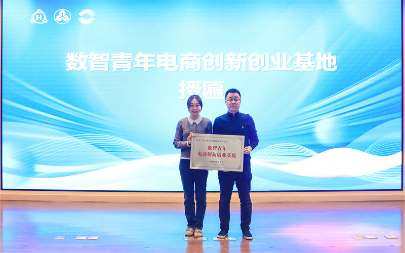 胡科强授予学院“数智青年电商创新创业基地”牌匾。