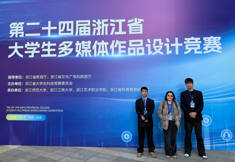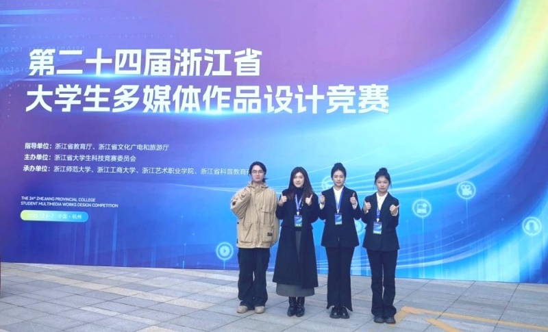 创意设计学院人物形象设计专业学生卢子豪、戚琉婷、孙楚艺作品《时空折叠·浙里》获二等奖,孙楚艺、戚琉婷、周柃含作品《数织水乡》获三等奖,指导教师赵家昕、黄汶俊;数字媒体艺术设计专业学生刘炫圻、俞一辉、叶智豪、冯思晔作品《梦厥VR——未来文旅新体验》获三等奖,指导教师詹心怡、陈江。