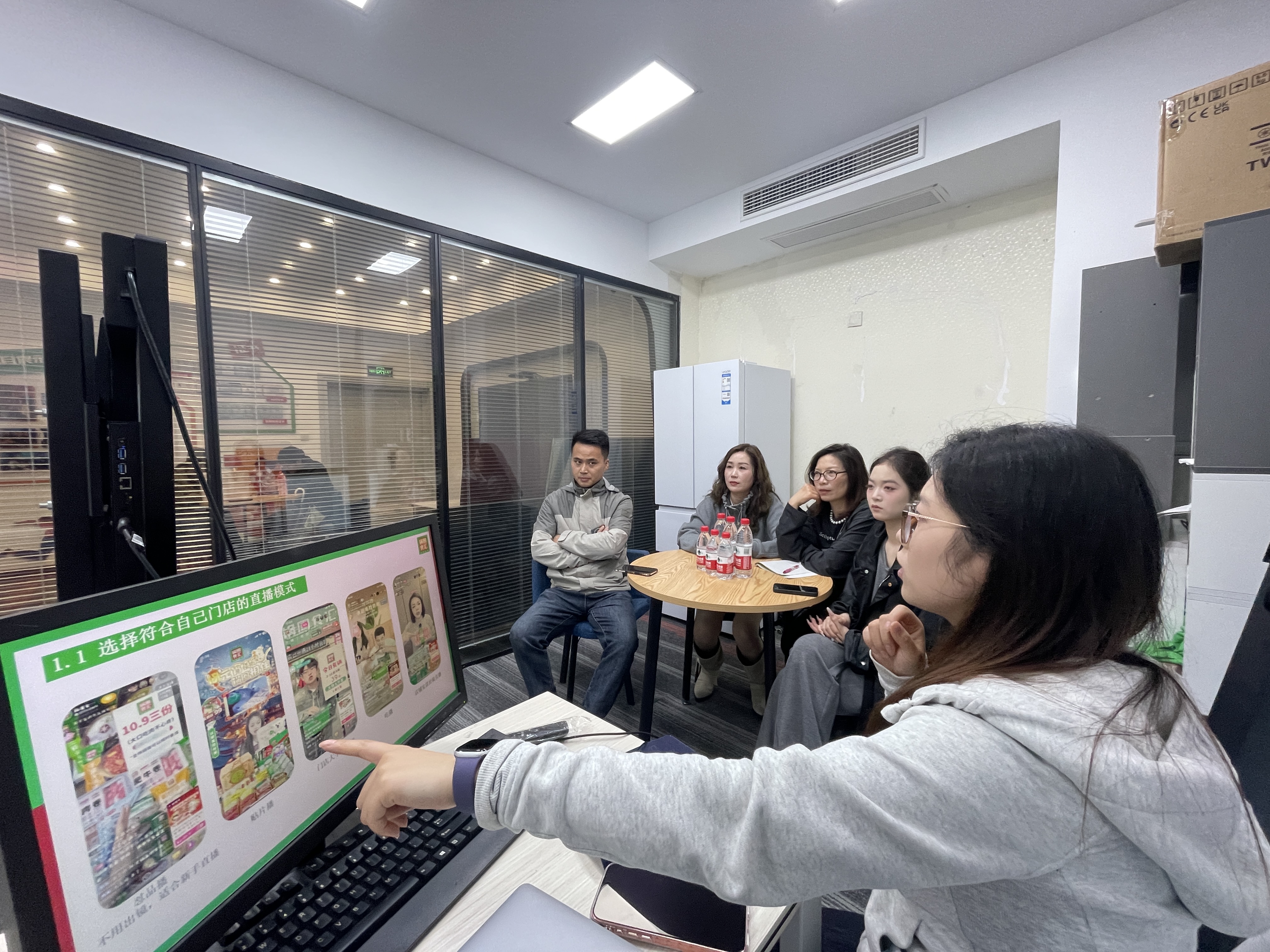 参观过后,台州的店长们还在直播间进行了合作培训,负责这次培训的是我们23级直播电商专业的学生潘飞帆,潘同学目前是大三实习,2025年2月至8月的大二时期,潘同学一直在学校的锅圈直播间做运营实训,9月正式签约成为锅圈的员工,目前潘同学被锅圈派回学校主负责学校直播间的日常运作,管理学弟学妹们的日常直播。在培训过程中,潘同学分享了锅圈与学校合作直播间的模式、学生培养、直播内容设计等,用满满的实战经验为锅圈店长们赋能增效!店长们也纷纷夸讲这么小年纪的学生已经有这样的直播经验,从这次培训中收获很多,回去台州一定要试试这样的模式。