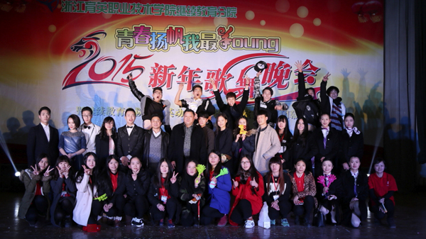 2015年1月20日晚,继续教育分院在体育馆举办“青春扬帆 我最young”2015新年歌舞晚会暨继续教育分院“育英动感地带杯”寝室文化月闭幕式。莅临晚会的嘉宾有经贸系党总支书记田翔、经贸系团总支书记余国浩、民航分院团总支书记姚蓓蕾、信息系团总支书记傅晶瑶、艺术系团总支书记郭磊、学院团委委员孙钦以及继续教育分院院长卢庆富、党支部书记施红波、学工办主任孙波、学工办副主任张文娟、综合办主任姚石、团总支书记李巧巧以及继续教育分院第三届学生会主席陈思琪、第四届学生会主席叶斌、第四届学生会副主席姚卉蝶。分院500余名师生参加本次晚会,大家齐聚一堂,辞旧迎新。