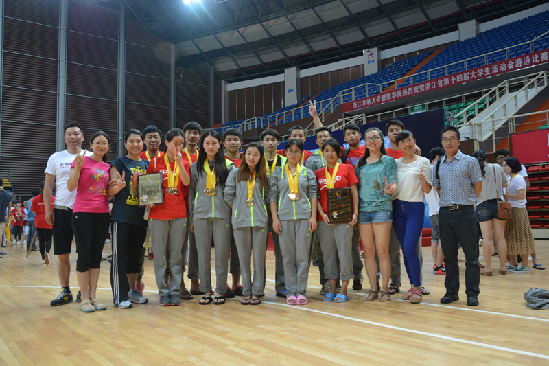 2015年6月4日-7日, 浙江省第十四届大学生运动会游泳比赛在浙江农林大学暨阳学院举办,我院游泳队在徐晓斌、季勋龙、蔡艳子、赵佳子、高瑜、李幸幸等老师带领下,5女8男参加乙组比赛,获得5金2银8铜,女团第一,男团第三,总团第二的优异成绩。教练赵佳子获“优秀教练员”称号,13物管A班沈润鑫和13经贸A班詹晓颖获“优秀运动员”称号。