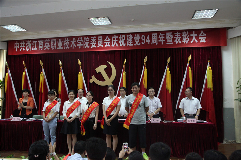 经济贸易系党总支、艺术系学生第一党支部、机关第三党支部获学院先进基层党组织称号,徐芳等22名教职工和8名学生获学院优秀党员称号,朱尧等7名教职工获学院优秀党务工作者称号,民航与旅游分院第24党章学习小组等10个学习小组获先进党章学习小组称号。学院领导为获奖人员颁奖。