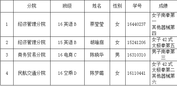 2017年浙江省大学生武术暨跆拳道乙组比赛 武术项目成绩汇总