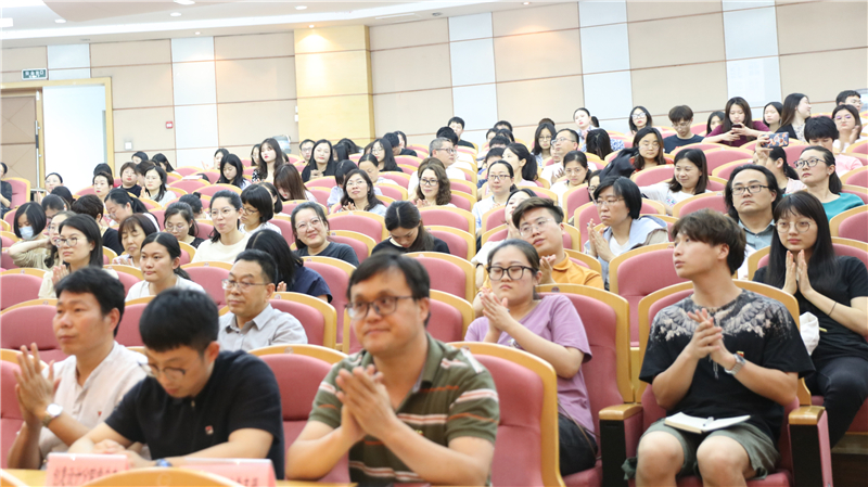 全体党委理论学习中心组成员、教职工党员和部分学生党员聆听报告。