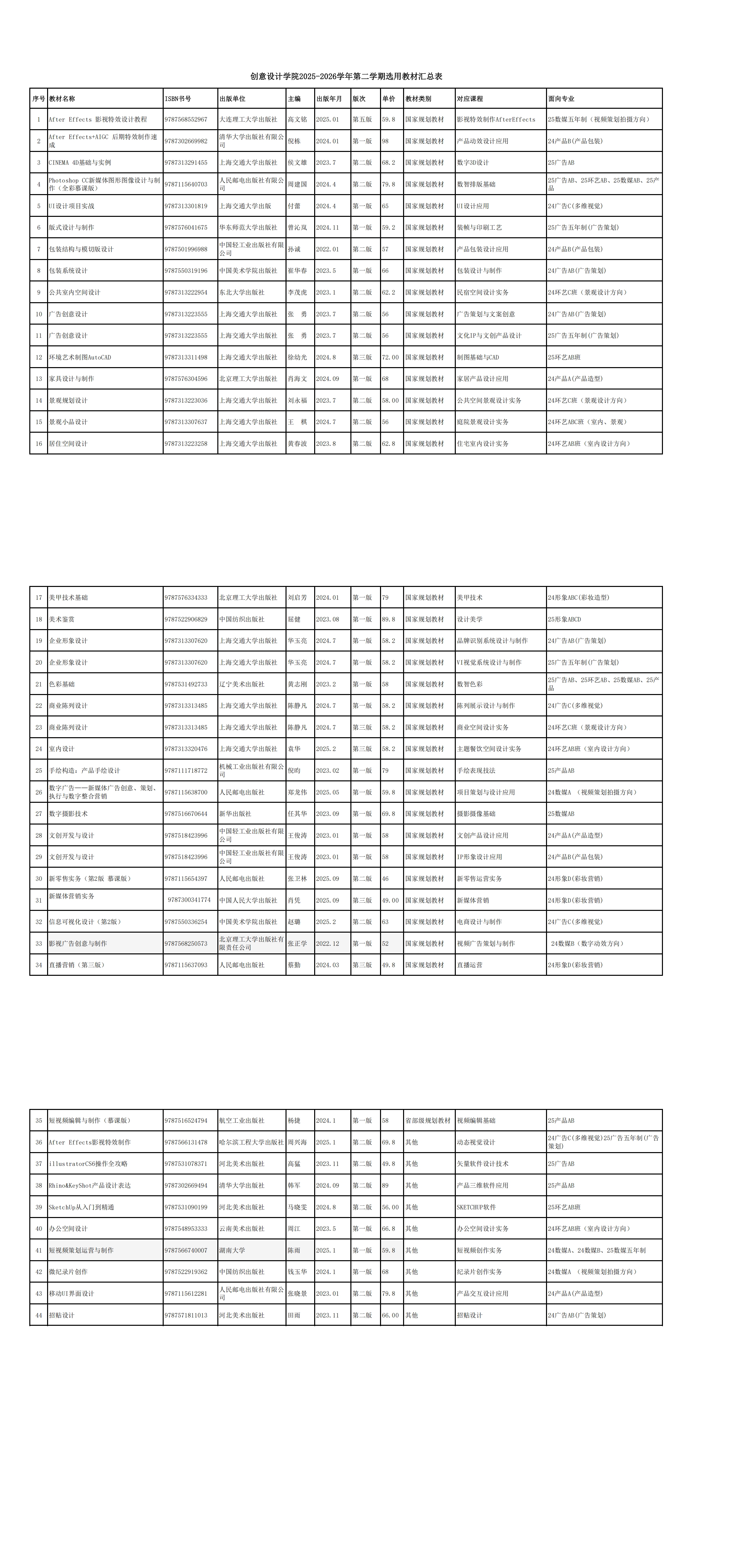 附件:创意设计学院2025-2026学年第二学期选用教材汇总表