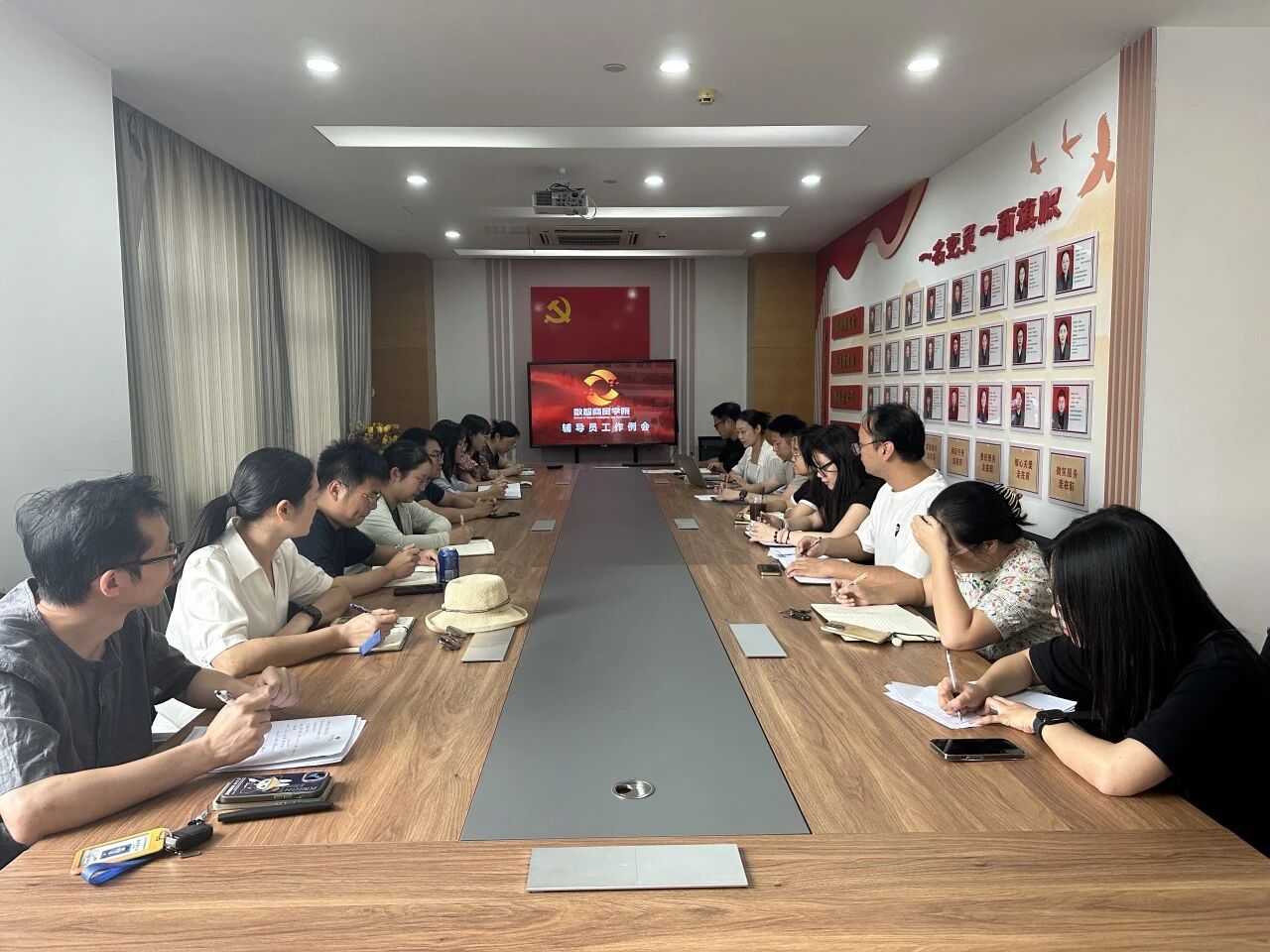 2025年10月9日上午,数智商贸学院辅导员工作例会在党员活动室召开,本次会议聚焦于加强辅导员队伍专业化建设,全面部署新学期学生工作。学院党总支书记、院长欧阳驹,党总支副书记、院长助理孙钦,学工办主任丁月明,教务办副主任冯建军及全体辅导员参会。