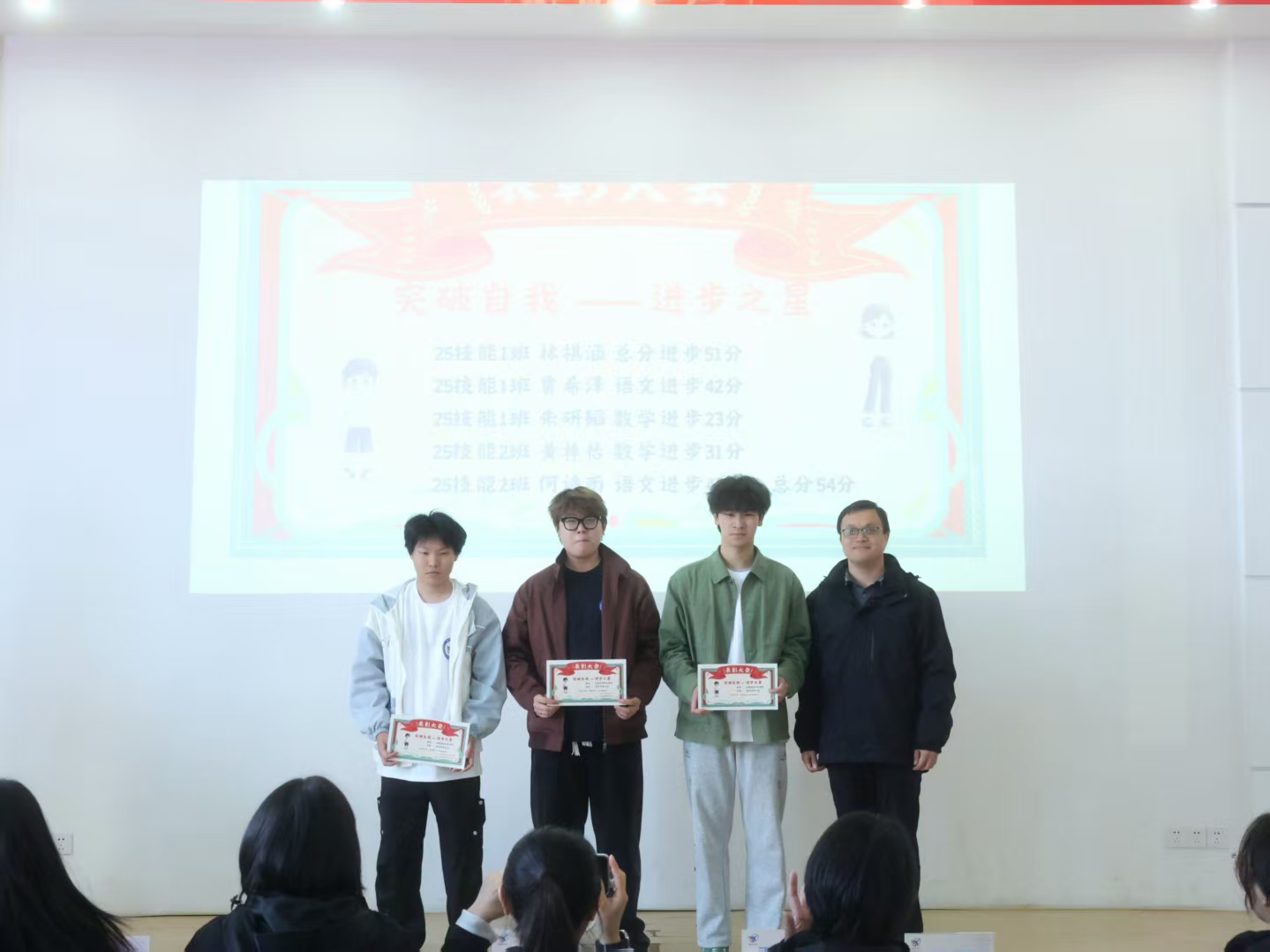 在热烈的掌声中,大会进入了核心环节——“荣耀时刻”颁奖典礼。本次大会设立了“总分状元、榜眼、探花”、“单科状元”、“进步之星”、“勤奋之星” 等多个奖项,旨在全方位、多角度地肯定同学们的付出与成长。获奖名单如下: