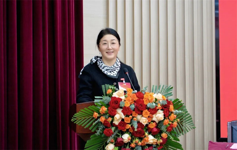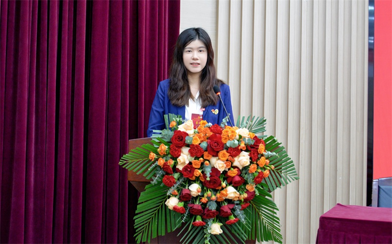 谢鑫发表讲话,她代表学校党委祝贺大会召开,并对全校学生干部提出三点希望:一是要筑牢政治忠诚,坚定理想信念。坚持用党的创新理论武装头脑,始终在思想上政治上行动上同以习近平同志为核心的党中央保持高度一致;二是要聚焦主责主业,服务同学成长。以“从同学中来,到同学中去”为理念,把服务同学成长发展作为一切工作的出发点和落脚点;三是要强化自身建设,锻造先锋队伍。建设政治坚定、作风优良、同学认可的队伍,推动学生会高标准、高质量发展。