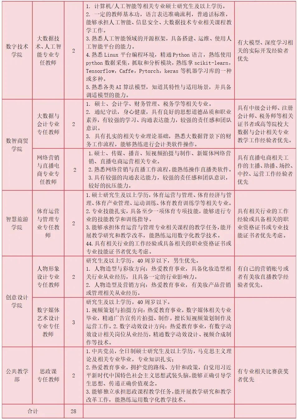 现新校区扩建,办学规模扩大,为提升学校事业发展需要,诚聘认同我校办学理念,愿投身高职教育事业、引领学生成长成才的优秀人才加盟,具体如下: