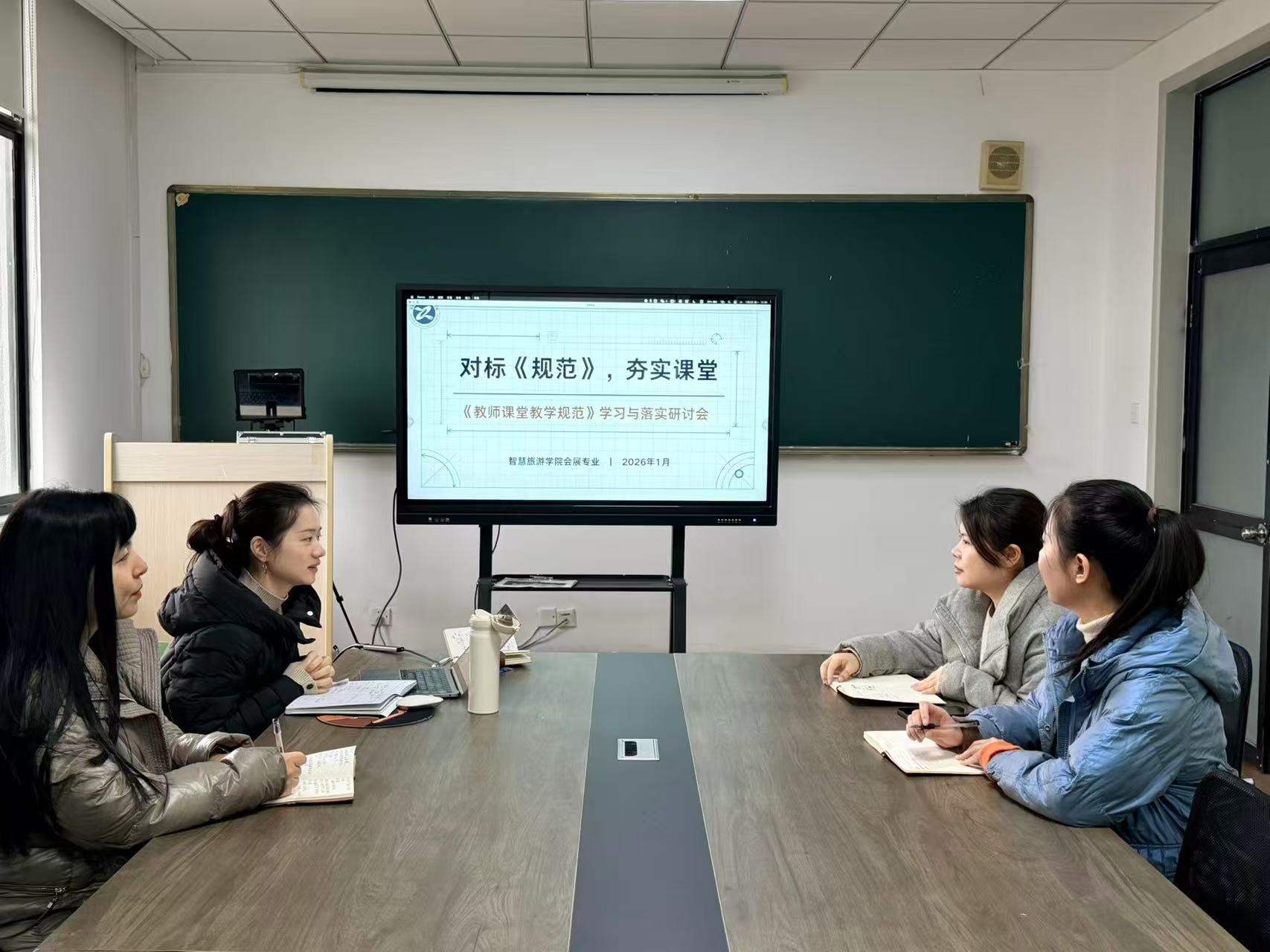 为深入贯彻落实学校关于课堂教学规范化建设的最新要求,切实提升教育教学质量,近日,会展策划与管理专业全体教师在1401召开《浙江育英职业技术学院教师课堂教学规范》专题学习研讨会。
