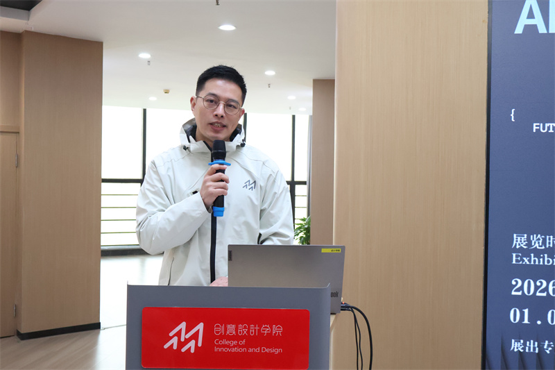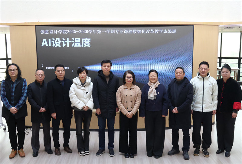 开幕式上,黄爱平高度评价本次教学成果展。她指出,面对人工智能浪潮,创意设计学院主动将AI工具、数字技术融入课堂与项目实践,推动教学内容与社会发展同频,助力学生能力适配时代需求。展出作品真实记录了师生从尝试探索、克服困难到取得突破的全过程,其中学生借助AI实现概念到视觉的快速迭代、课程对接真实项目需求等实践,正是改革有效性的生动印证。她为学院师生的探索精神点赞,强调改革需落实在课堂变革与设计作品之中。她希望全体教师持续大胆探索,将产业前沿技术转化为学生可掌握的能力;鼓励学生积极配合教学探索,保持艺术好奇心,坚守工匠精神,从技术使用者成长为用技术创造价值、解决问题的设计师。