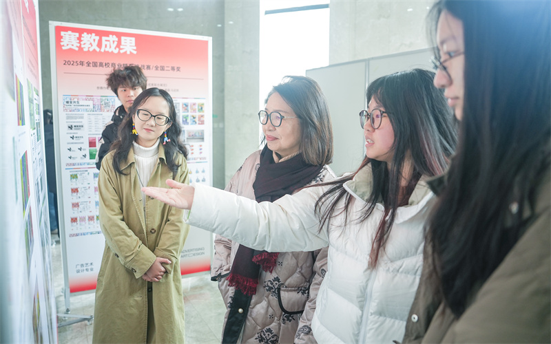 广告艺术设计专业教师马芸莉分享了带学生竞赛历程中的感悟与收获。她表示,作为专业教师,不仅要以专业功底带领学生打磨作品细节,精进设计技能,更要以设计育人的热忱,传递“学思践悟、知行合一”的理念,帮助学生在攻克设计难题的协作中体悟团队创作的价值,在对接真实行业需求的过程中明晰设计服务社会的责任,真正让专业能力成为赋能成长、服务社会的有力支撑。