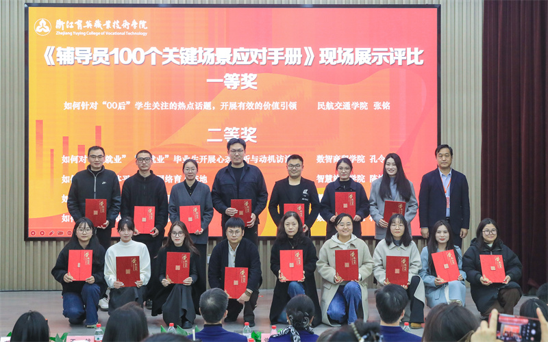 徐晓斌宣读表彰文件。大会对主题班会观摩评比、《辅导员100个工作场景应对手册》编写与展示、辅导员工作案例大赛、学生思政工作优秀论文等多个项目的获奖者进行表彰。谢鑫、徐晓斌、崔海辉、严志嘉分别为获奖者颁奖。黄爱平为首批辅导员工作室立项单位授牌。丁金昌为第二期辅导员导师颁发聘任证书。