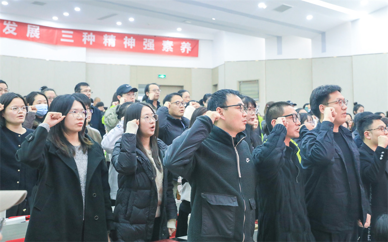 学务部副部长王亦飞带领各学院学工办主任、团总支书记及全体辅导员庄严宣誓,表达了学工队伍潜心育人、担当作为的坚定决心。