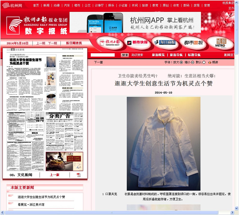 杭州日报:http://hzdaily.hangzhou.com.cn/hzrb/html/2014-05/10/content_1724146.htm