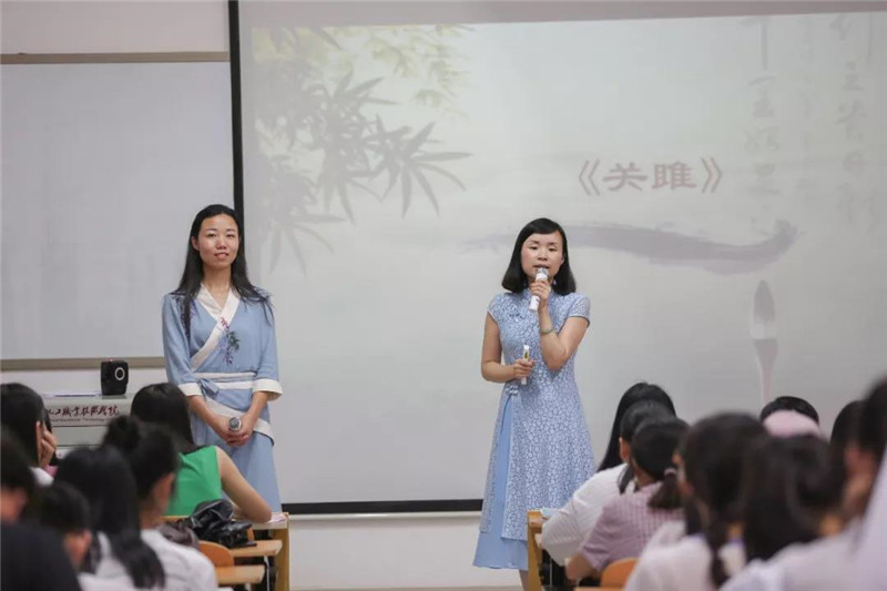 2018年6月14日,湖南化工职业技术学院思政课教师李菡(左一)和语文课教师邓滢(右一)共同带来了一场特别的思政课。罗治国/摄