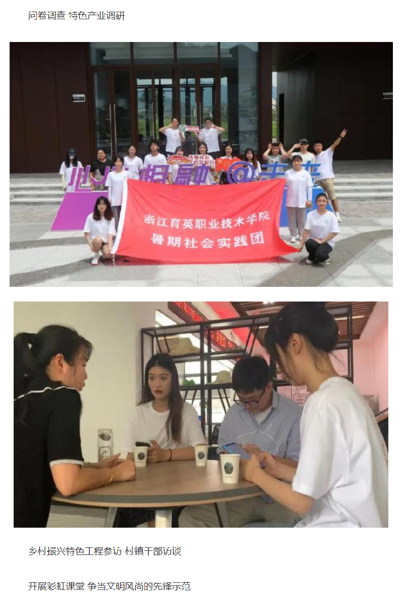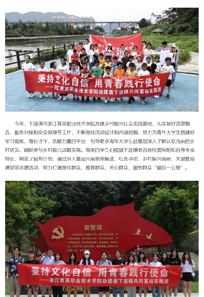 媒体看育英 联系我们 地址:杭州市钱塘区4号大街16号 邮编:310018 电话:0571-86911032、86877189 媒体看育英 当前位置:首页 >> 媒体看育英 【中国日报】“秉持文化自信 用青春践行使命” 浙江育英职业技术学院共同富裕实践团走进建德下涯镇 时间:2021-07-30