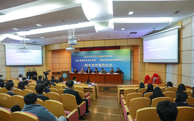 2021年12月7日下午,浙江育英职业技术学院与北京三快在线科技有限公司(美团)签约仪式举行。