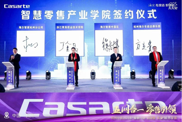 海尔智家中国区总经理徐志博指出,数字赋能新零售对内要进行业务模式重构,对外要加强与高校合作,“共建库、储人才”。产业学院的成立将校企合作推向一个新台阶,希望深化双方合作,进一步培养企业需要的应用型、复合型新零售人才。从人才定制、课程开发、技术研发、人员培训等方面着手,共同打造海尔杭州乃至整个中国区校企合作的典型案例与标准化模式样板。