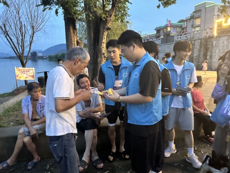 习近平总书记多次指出:“把红色资源利用好、把红色传统发扬好、把红色基因传承好”。红色文化作为党和国家的宝贵精神财富,在文化自信的维度上起到了传承红色基因、赓续精神血脉的作用。实践小队的成员们在大洋村党群服务中心,在村头街边,深入广大群众。在傍晚群众纳凉时,为广大群众发放《建德红色教育手册》等红色教育材料,讲解建德红色文化,弘扬革命精神。一起重温革命先辈的伟大事迹,缅怀先辈的丰功伟绩。分享了建党以来中国翻天覆地的变化,让大家直观地感受到了国家的进步和发展,感知红色文化,切实体会到社会主义的先进,在潜移默化中深植习近平新时代中国特色社会主义思想和爱党爱国情怀。
