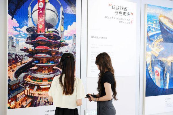 这场主题为“绿色银泰、绿色未来”的AIGC艺术设计作品展及颁奖活动,由阿里银泰主办,杭州火车西站承办,育英学院与D.DESIGN堆友软件共同协办。育英学院广告艺术设计与产品艺术设计两个专业100余名学生在老师郭磊与李晓指导下,结合专业知识,运用阿里研发的“堆友”设计智能软件进行设计创作,完成了多件优秀的AI生成插画设计作品。同学们将自己对未来绿色消费、绿色商场和绿色生活的畅想灌输给人工智能,以AIGC(人工智能生成内容)方式产出画作,并经数字化处理,用可循环使用的塑料积木块拼搭成像素画,呈现在世人面前。