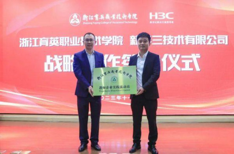 丁金昌致辞。他介绍了学校基本情况,并表示,本次战略合作签约,是学校与企业“无缝对接”,专业与产业“同频共振”,深化产教融合的实质性举措。他说,育英学院和新华三都是习近平总书记曾经视察过的单位,习近平总书记的殷切嘱托一直激励着育英人不断向前奋进。经过多年发展,学校特色和优势更加明显,所有专业紧密对接浙江省、杭州市支柱产业。自建校以来,学校坚持立德树人,主动适应市场需求,着力于培养高素质复合型技术技能人才,精心设计人才培养方案,不断深化产教融合,全面推动与头部企业全方位合作,分别成立了“育英-深信服产业学院”“育英-海尔智家智慧零售产业学院”等产教融合载体。本次与新华三合作的信息技术专业群,在专业建设、教学改革中成果丰富,尤其是赛教融合的教学特色明显,学生在各类竞赛中获得特等奖、一等奖百余项,在浙江省乃至全国具有较大影响力。新华三集团作为数字化解决方案领导者,深度布局“芯-云-网-边-端”全产业链,不断提升数字化和智能化赋能水平。校企双方可以在人才培养、实践基地建设、团队共建、课程共享、职业证书开发、党建共建等方面进行深度合作、资源共享、优势互补,达到学校、企业、学生三位一体的有机结合,最终实现三方共赢。