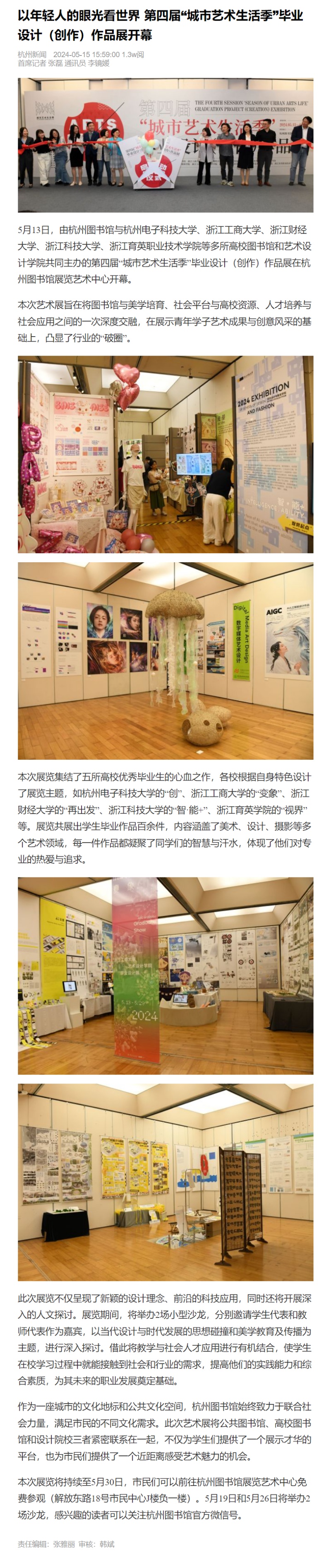 媒体看育英 联系我们 地址:杭州市钱塘区4号大街16号 邮编:310018 电话:0571-86911032、86877189 媒体看育英 当前位置:首页 >> 媒体看育英 【杭州新闻】以年轻人的眼光看世界 第四届“城市艺术生活季”毕业设计(创作)作品展开幕 时间:2024-05-17