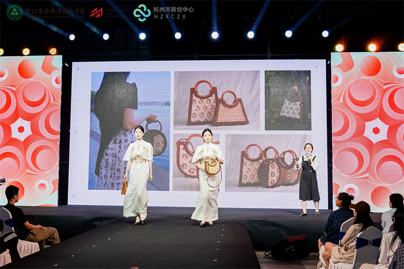当晚,浙江育英职业技术学院创意设计学院的毕业生们,把自己的毕业设计作品搬到了创业园区,秀创意作品、讲奇思妙想,展青春形象,以充满想象力的设计作品和活力四射的青春时尚,赢得现场师生、企业代表的阵阵掌声。