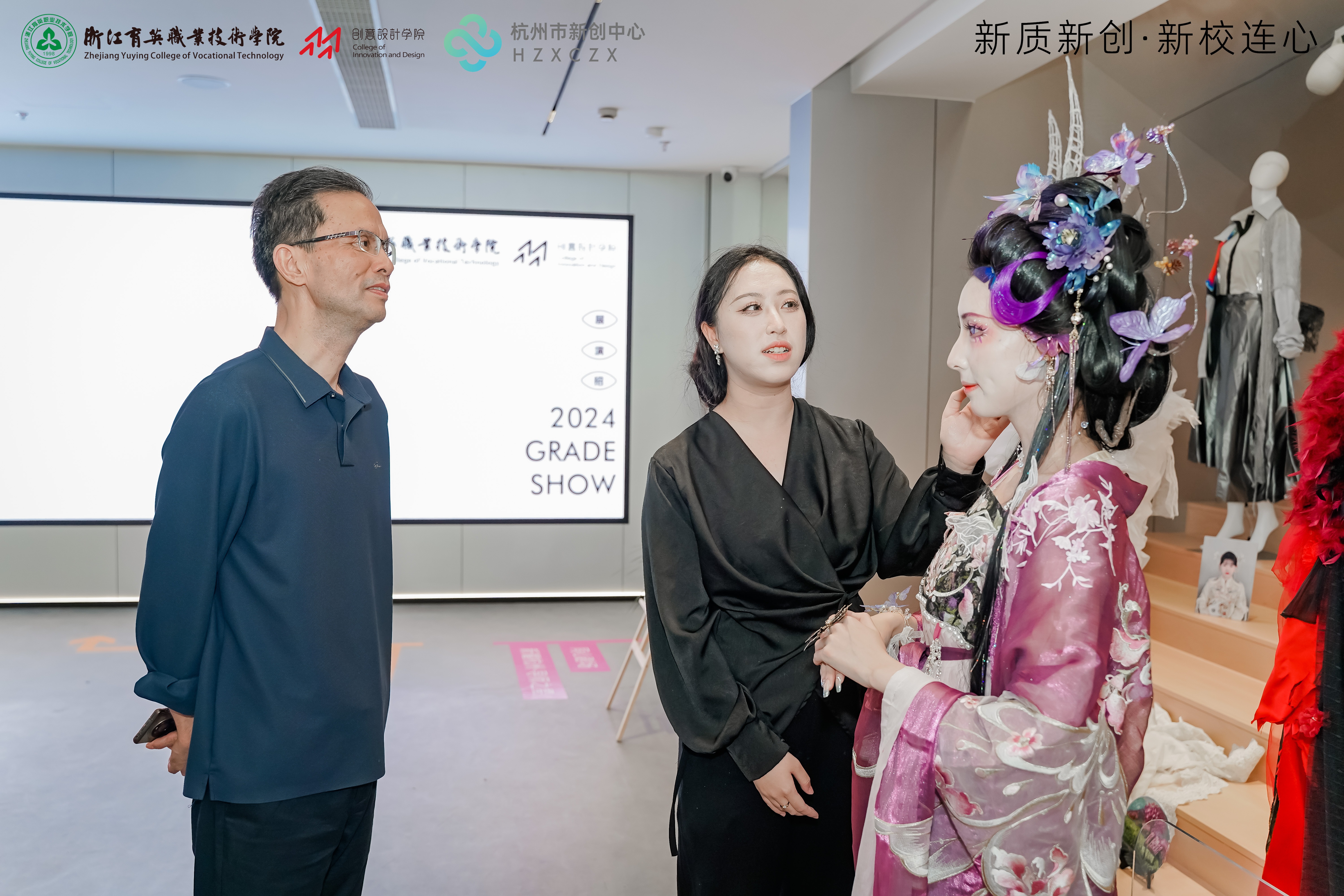 谢鑫表示,创意设计学院连续多年坚持举办毕业设计作品展演活动,一是对教学成果的展示,二是对即将奔赴工作岗位的学生的一种激励。学院一直坚持毕业设计选题以真实项目为主,学生的毕业设计作品和市场需求无缝对接,取得良好的社会反响。本次毕业设计展演活动以“视界”为主题,旨在表达通过数字化技术探索新的设计空间,拓展设计视野、延展设计边界。政府、行业、企业、学校四方协同,“新质新创·新校连心”,让大学生的创意作品走出校门、走进创业园区、走进企业,让新锐创意对接产业需求,让新生设计力量对接企业人才需求,也是高职院校探索产教深度融合,供给侧与需求侧紧密对接的一次尝试。