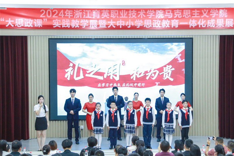 6月11日,浙江育英职业技术学院马克思主义学院联合杭州市钱塘区景苑中学、景苑小学、月雅河小学,共同主办“大思政课”实践教学展暨大中小学思政教育一体化成果展。