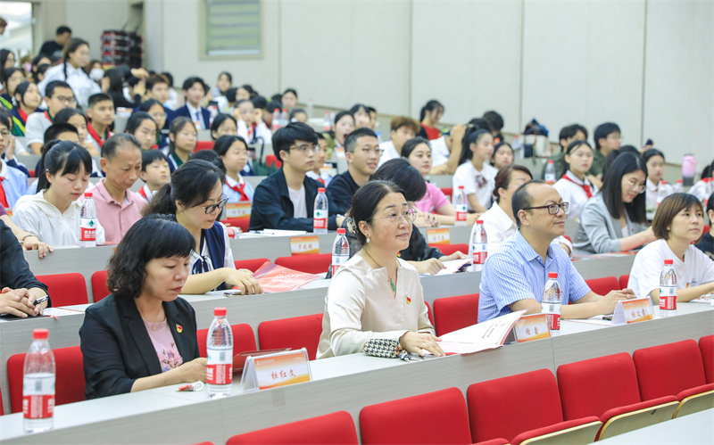 开幕式上,谢鑫发表讲话。她表示,从大中小思政课一体化建设到大中小思政教育一体化建设,学校一直在大力推进,不断研究、探索和延展,在内容上研究从“点”到“线”的融汇贯通,在对象上研究由“课”及“人”的延展延伸,在范围上研究自“内”而“外”的互联互嵌,推进不同学段之间思政教育有效联接和“思政小课堂”与“社会大课堂”有机融合。学校携手景苑中学、小学、月雅河小学、杭实外等共同体成员单位,大中小学师生共同完成一堂与众不同的大思政课,所有节目由大中小学老师共同指导,大中小学生同台表演,观众是大中小学生,这是非常好的尝试。希望在各校领导重视下,在老师们共同努力下,出品更多助力孩子成长、赋能教师发展、激活学校红色引擎的好活动、好项目和好教育。