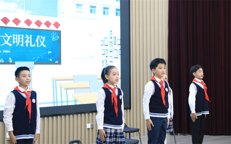 节目展演分为“学思之旅”“践悟之路”和“共筑未来”三个篇章。大中小学生联手,通过歌曲连唱、朗诵等形式表达对新时代的歌颂、对未来的憧憬和对梦想的坚定追求;通过礼仪情景剧展现礼仪在人际交往和文明社会建设中的重要性;通过大学生讲思政课《三大产业历久弥新 宏伟蓝图接力永续》,增强同学们对家乡发展的自豪感和责任感;通过古典舞蹈《采薇》展示中华文化的博大精深。