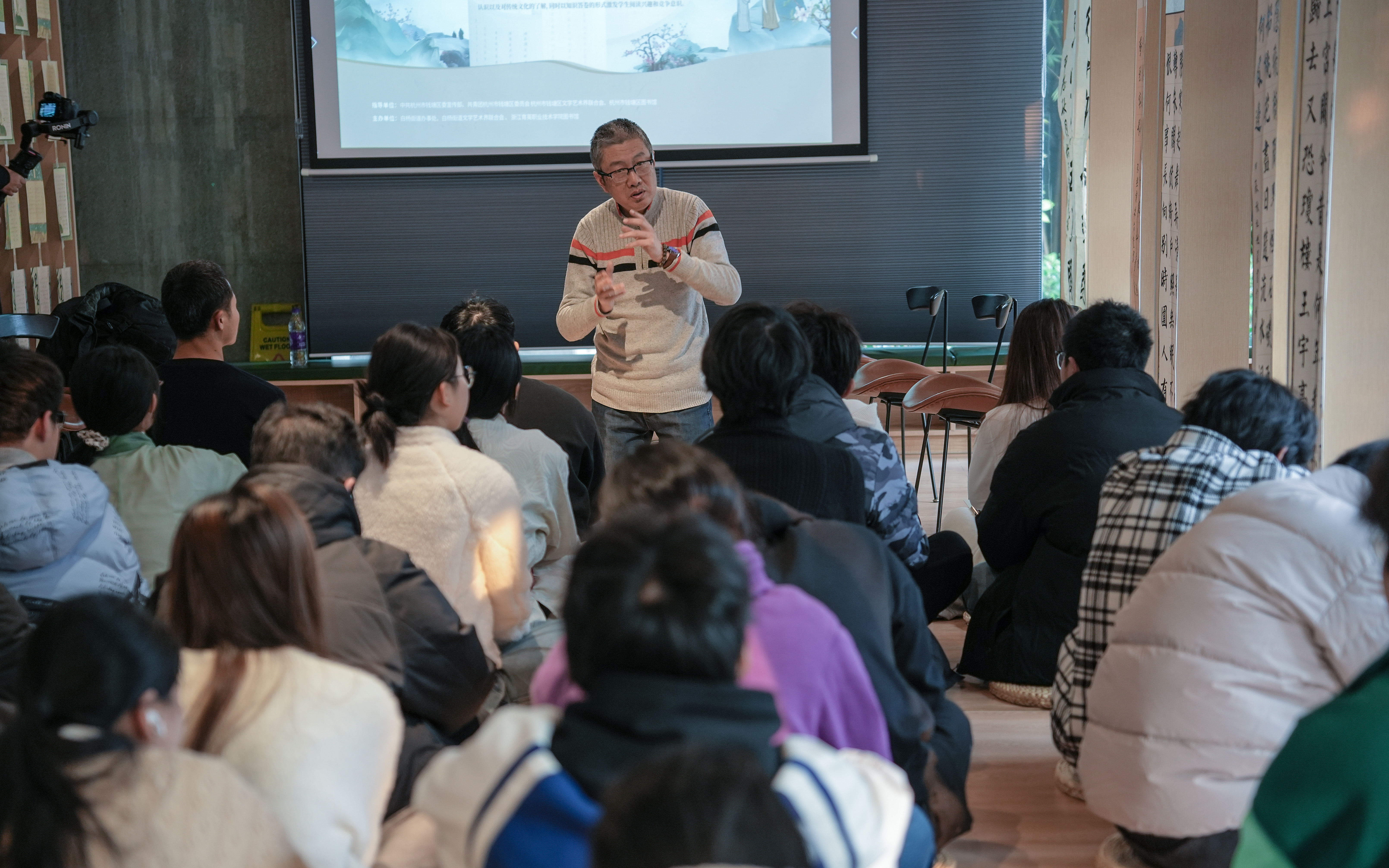 活动当天,书吧内阅读气氛浓厚,整齐摆放的蒲团、悬挂的主题横幅、图书馆珍藏的书法作品等为现场增添了许多“氛围感”。