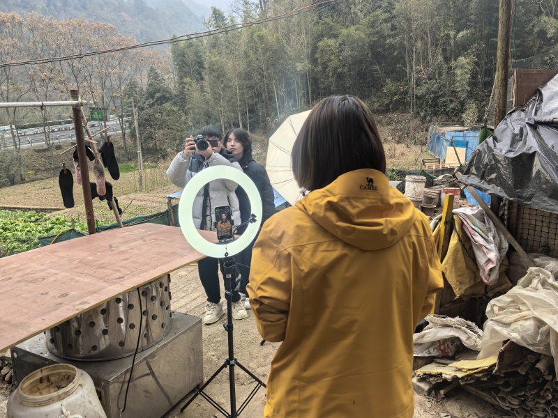 师生们前往洞坑口村农产品基地,利用学院的数字营销平台,通过直播推广和销售土鸡、土鸡蛋、富硒土豆、天然蜂蜜等农特产,让更多消费者通过直播了解和购买到这些天然、绿色的农特产品。村民们表示,借助直播销售平台,村里的农产品销售不仅提高了效率,还扩大了市场,促进了收入增长。