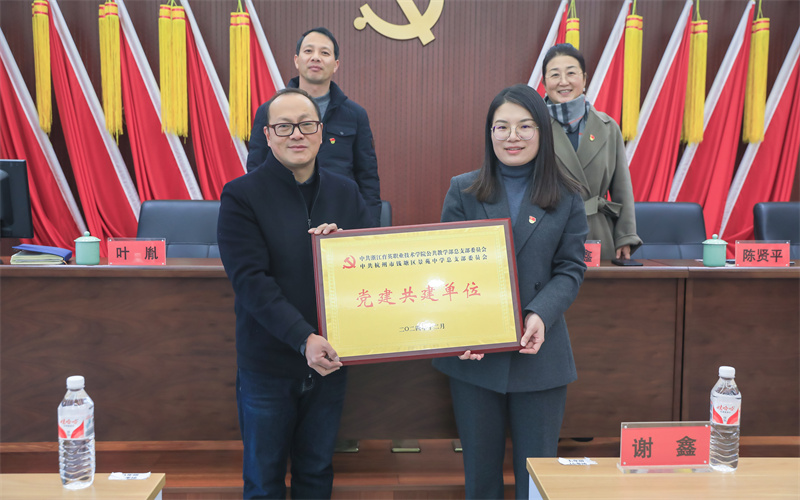 2024年12月25日下午,浙江育英职业技术学院与钱塘区景苑中学大中小学思政教育一体化共同体暨党建共建单位揭牌仪式在景苑中学举行。育英学院党委书记、副校长谢鑫,公共教学部党总支书记、主任、马克思主义学院院长陈贤平,党总支副书记、副主任谢剑峰,景苑中学党总支书记邱松良,党总支副书记、校长叶胤,党总支委员、副校长张文章出席揭牌仪式。学校公共教学部党员教师代表和景苑中学全体党员教师参加。叶胤主持会议。