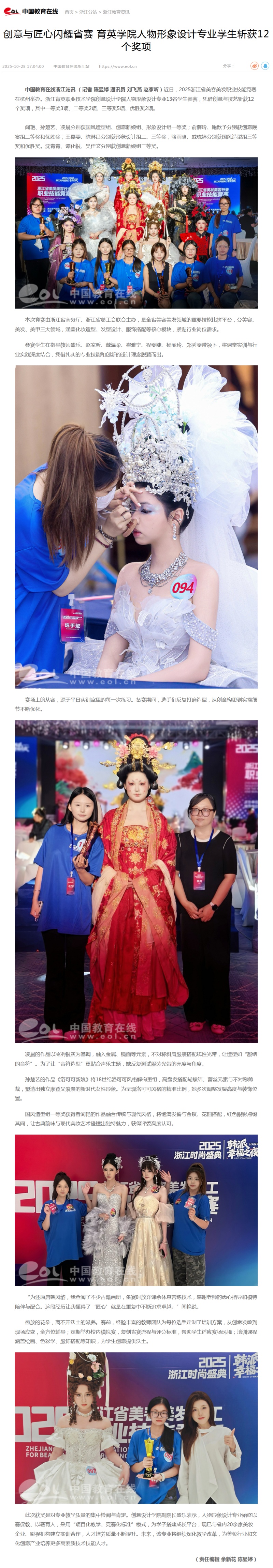 【中国教育在线】创意与匠心闪耀省赛 育英学院人物形象设计专业学生斩获12个奖项